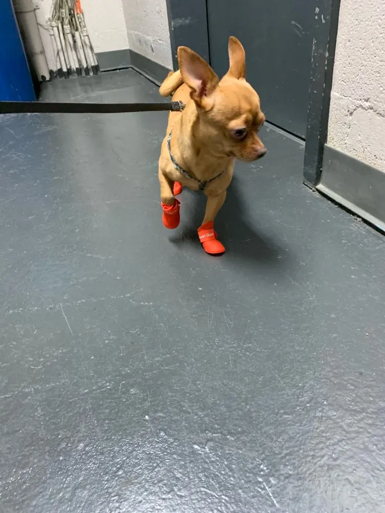 The shoes fit the description. The quality is great, very bright and soft, I think my dog will like them.